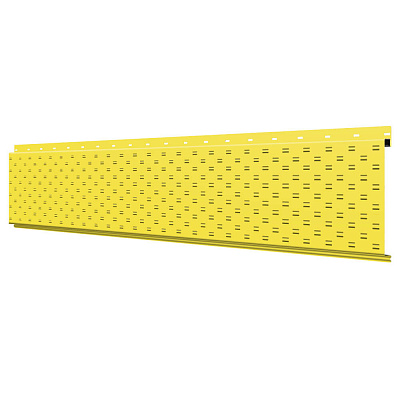 Линеарная потолочно-стеновая панель с ПЕРФОРАЦИЕЙ для вентиляции цвет RAL1018 Желтый применяется в качестве софитов для подшивы крыши, наружной и внутренней отделки потолков, стен, фронтонов фасада дома в Краснодаре.