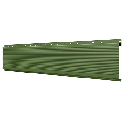 Линеарная потолочно-стеновая панель РИФЛЕНАЯ усиленная цвет RAL6002 Зеленый Лист применяется в качестве софитов для подшивы крыши, наружной и внутренней отделки потолков, стен, фронтонов фасада дома в Краснодаре.