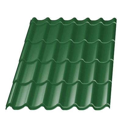 Металлическая черепица Меркурий цвет RAL 6002 Зеленый Лист имеет профиль внешне на кровле напоминающий классическую керамическую черепицу. Меркурий — это обновленный аналог профиля металлической черепицы для кровли крыши. Форма профиля имеет богатый внешний вид напоминающий небольшие набегающие волны. Лучшие показатели герметизации сделали профиль Меркурий гарантом стабильной и долговременной службы на крышах в Краснодаре. Данный профиль отличается не только своим качеством и практичностью, но и благородным внешним видом.