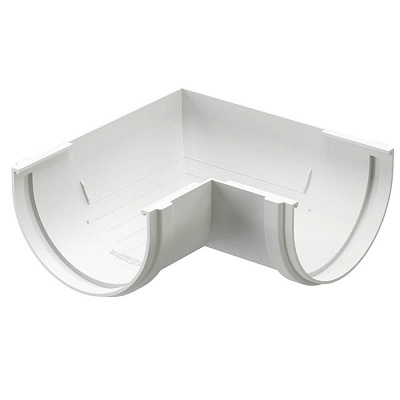 Угловой элемент 90 градусов RAL 9003 Белый Пломбир Устанавливается на внешних и внутренних углах кровли и предназначен для соединения желобов под углом 90° в целях изменения направления движения воды. 0,24 15